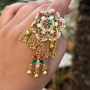 Ideal for bridal functions, mehendi ceremonies, festive celebrations, and traditional events, this statement ring adds a regal touch to lehengas, sarees, and Indo-traditional ensembles. Designed for women who love bold heritage accessories with vibrant colours and intricate detailing, this piece reflects the richness of Indian jewellery traditions.
